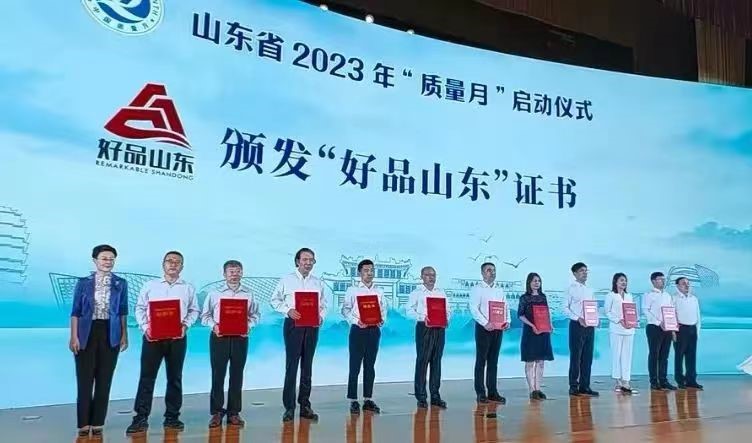 2023年9月12日,山東省2023年“質(zhì)量月”啟動(dòng)儀式在淄博舉行。我公司作為“好品山東”的企業(yè)代表,受邀出席,并在會(huì)上現(xiàn)場(chǎng)上臺(tái)領(lǐng)取“好品山東”形象標(biāo)識(shí)授權(quán)使用證書(shū)。